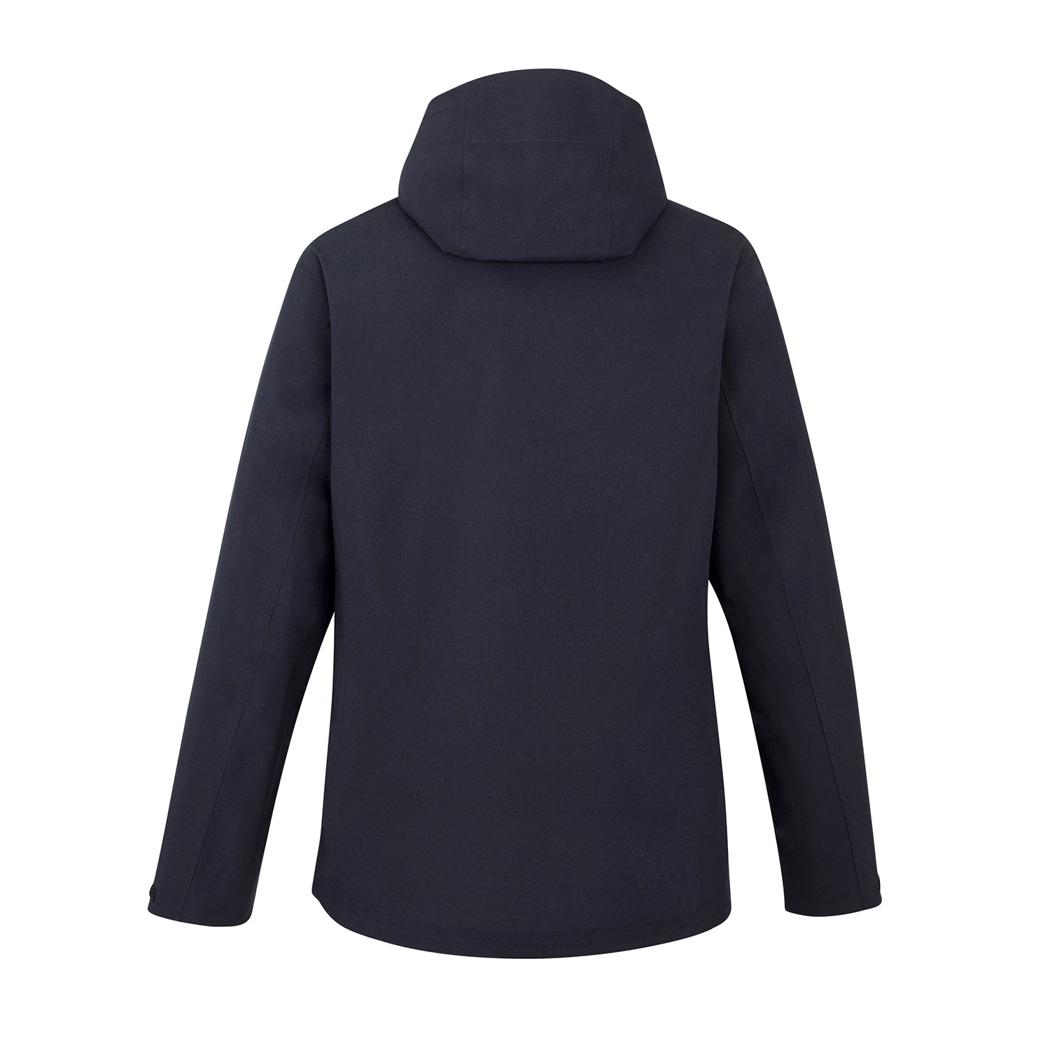 145 gsm – 4.3 oz./yd2 – 7 oz./lin. yd 100% recycled polyester mechanical stretch 5000 mm waterproof rating, 1500 gsm breathability rating, wind resistant and water repellent finish. Fully seam sealed. Adjustable drawcord in hood and body hem. YKK waterproof front zipper, zippered pockets. Unlined.