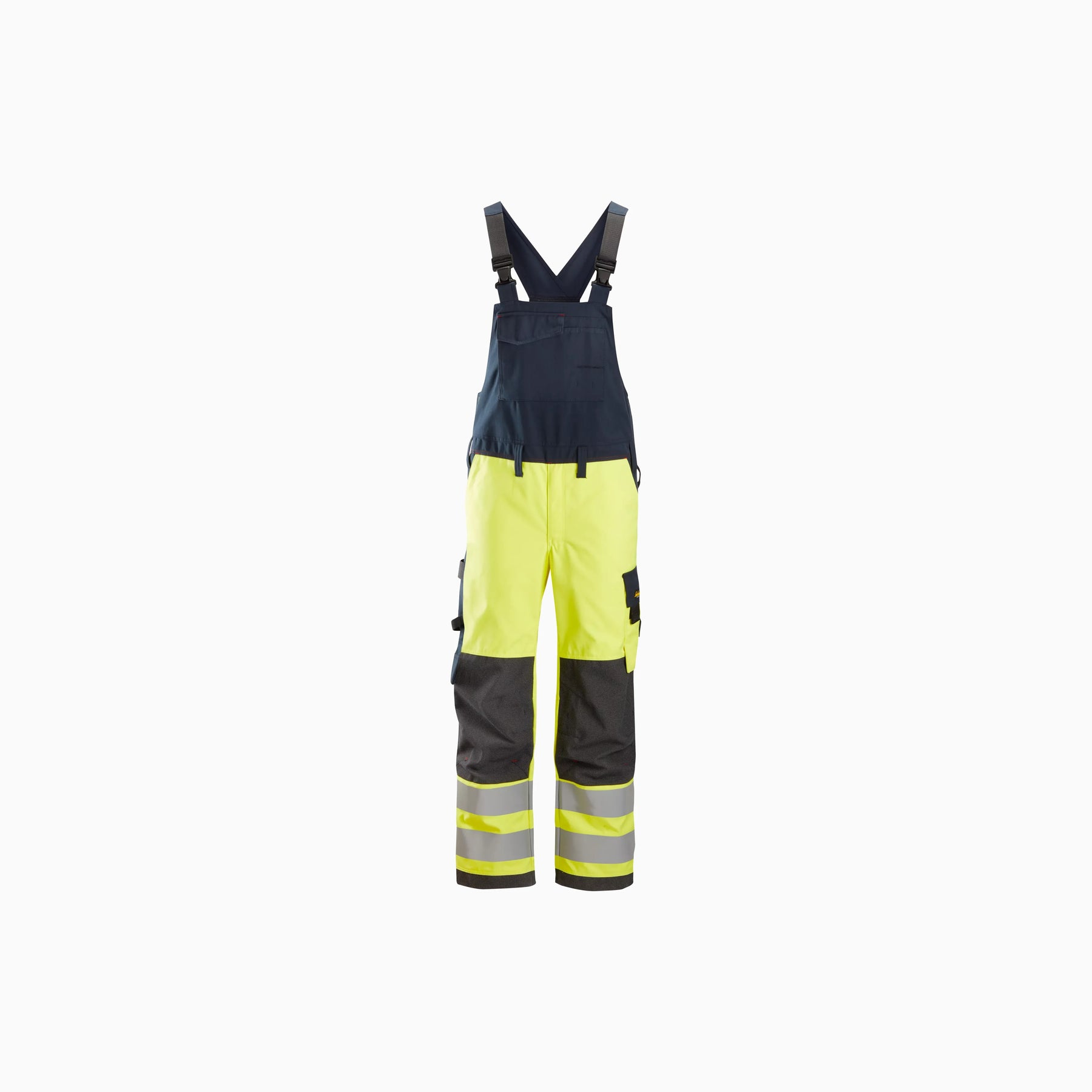 Bib and brace trousers offering personal protection during welding and work in hazardous environments. They feature a class 1 rating against electric arc and have been designed with inherent heat and flame protection. In addition, Class 2 visibility means they are suitable for work in low-light conditions. Adjustable shoulder straps, pre-bent legs and KneeGuard™ pockets ensure great fit and optimal knee protection. Reinforced pockets make for hard-wearing storage while holster pockets can be bought separately and attached to the trousers or belt.
