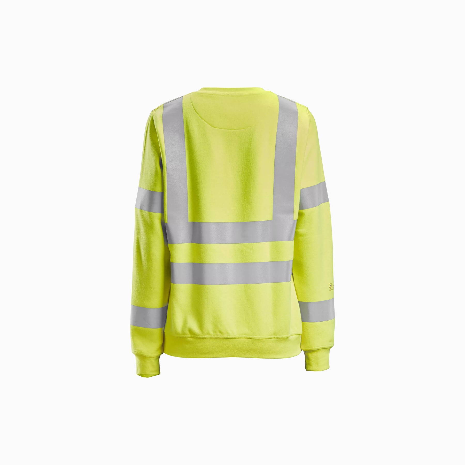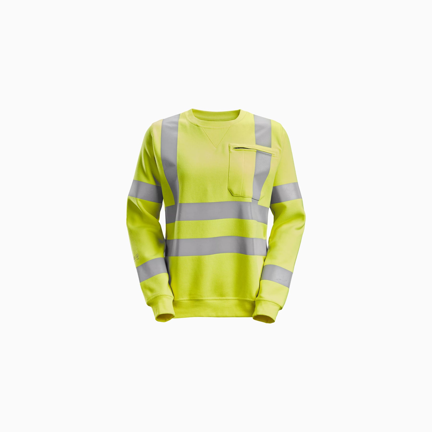 Soft and durable sweatshirt designed with a female fit. The sweatshirt combines excellent protection in high-risk work areas with certified Class 3 visibility (XS cl.2). With an extremely high ELIM value of 17 cal/cm² together with Arc Protection Class 2, this sweater offers enhanced protection as a single item or as part of a layered system. Made from a modacrylic/cotton blend with inherent flame-retardant and antistatic properties, plus a brushed inside for extra safety and comfort. Features segmented heat-transfer reflectives for enhanced flexibility and a navy ribbed collar and cuffs to help conceal dirt. In addition, a zipped chest pocket with pen compartment offers secure and practical storage. The regular fit makes it ideal as a midlayer. Easy to care for – wrinkle-resistant and suitable for tumble-drying. OEKO-TEX® Standard 100 certified fabric.
