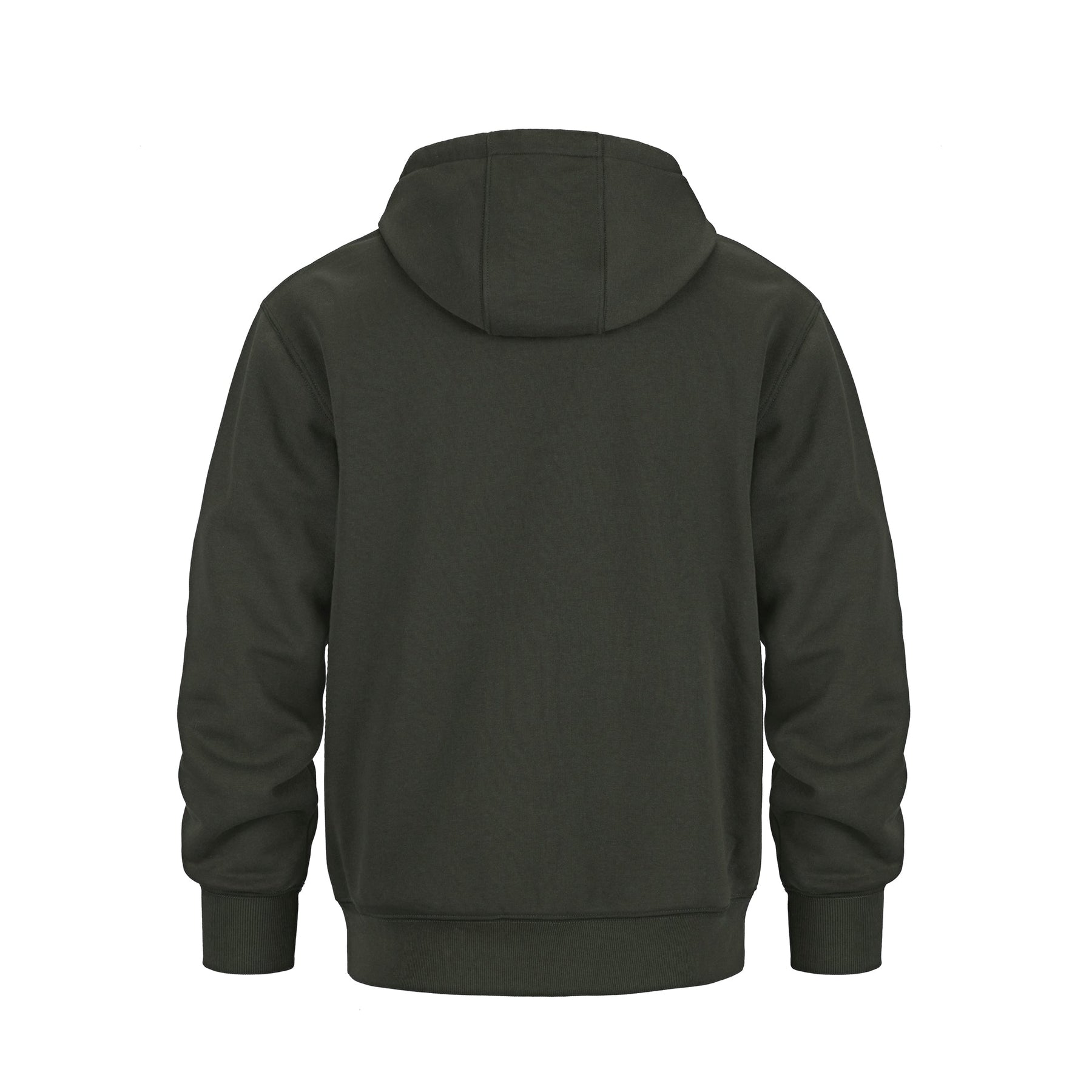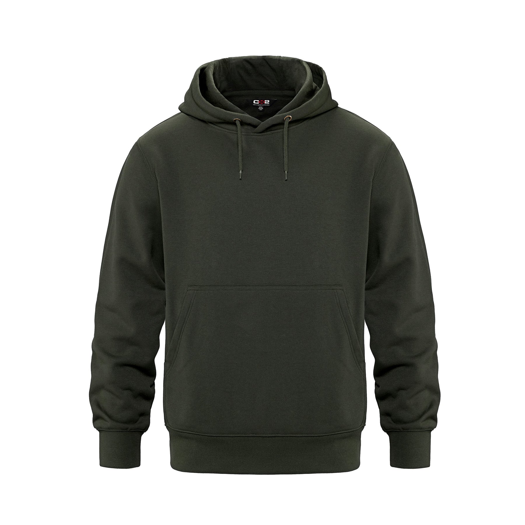 440 gsm - 13 oz./yd² - 21.5 oz./lin. yd 50% cotton, 50% polyester heavyweight fleece with PFC Free water repellent finish. Jersey lined hood with drawcord. Rib knit cuff and hem. Kangaroo pocket with triple needle topstitching and hidden pocket. Tear away label. Made in Bangladesh
