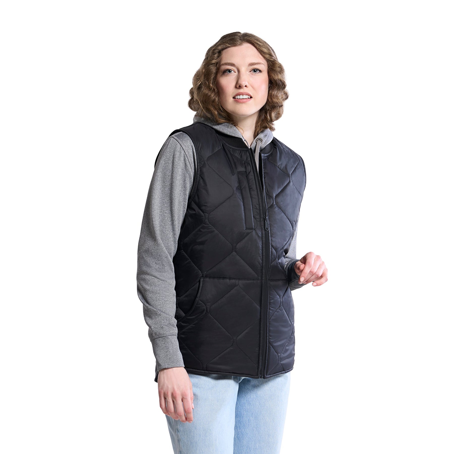 37 gsm – 1.1 oz./yd² – 2 oz./lin. yd 100% nylon taffeta with PFAS free water repellent finish. Insulation: 140 gsm 100% recycled polyester. Black rib knit collar and YKK front zipper and zippered chest pocket. Lower front kangaroo pockets. Two interior pockets. Clam Shell zocket embroidery access. Drop tail back hem.