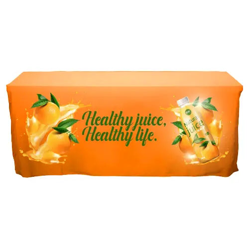 Elevate your company’s professional image at trade shows and seminars with our top-tier fitted table covers featuring an open back. Customize these tablecloths with your logo or vibrant graphics, rendered in full color. This not only imparts a clean and timeless aesthetic but also grants adaptability to suit diverse requirements. The under-table storage space offers easy accessibility, ensuring convenience. Begin crafting your personalized three-sided fitted table cover for your upcoming event today! Fitted Table Cover With Open Back sizes start from 4 Feet, 6 Feet, 8 Feet and we also offer Custom Sizes.