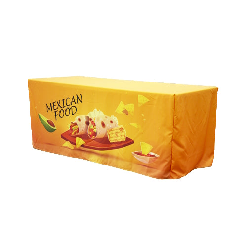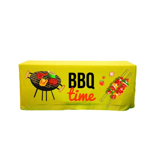 Outlet Tags Canopies presents a functional and fashionable enhancement for trade shows or promotional events. This tailored table cover features a vertical Velcro strap at the rear, ensuring convenient access to stored items beneath the table. Its uncomplicated design and precise craftsmanship have garnered popularity among numerous event attendees. The Fitted Table Cover With Velcro sizes start from 4 Feet, 6 Feet, 8 Feet and we also offer Custom Sizes.