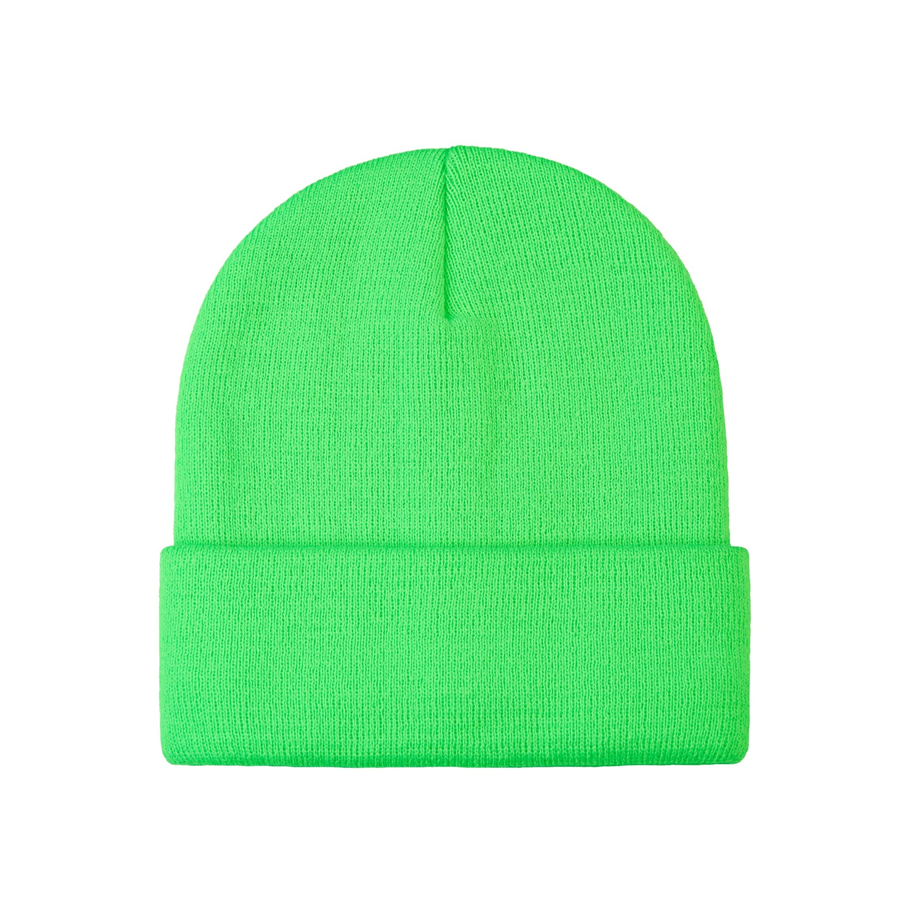 100% Acrylic Roll Cuff Design – Adjustable Cuff shown as 3”. Stretchy premium weight with superior shape retention. Fully lined with 100% Polyester polar fleece for added warmth. Tear away label.