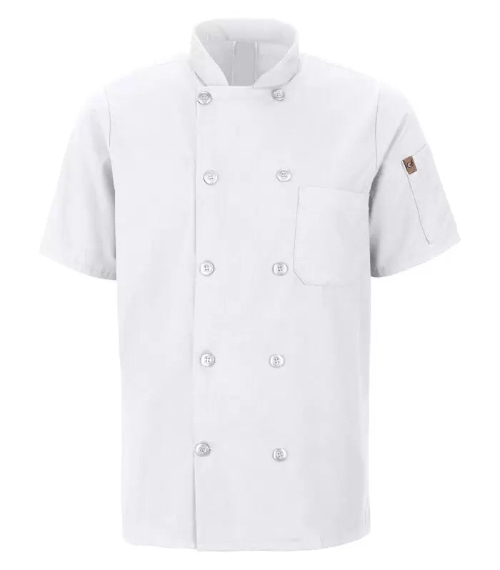 RED KAP® CHEF DESIGNS® SHORT SLEEVE CHEF COAT WITH OILBLOK + MIMIX™. 046X