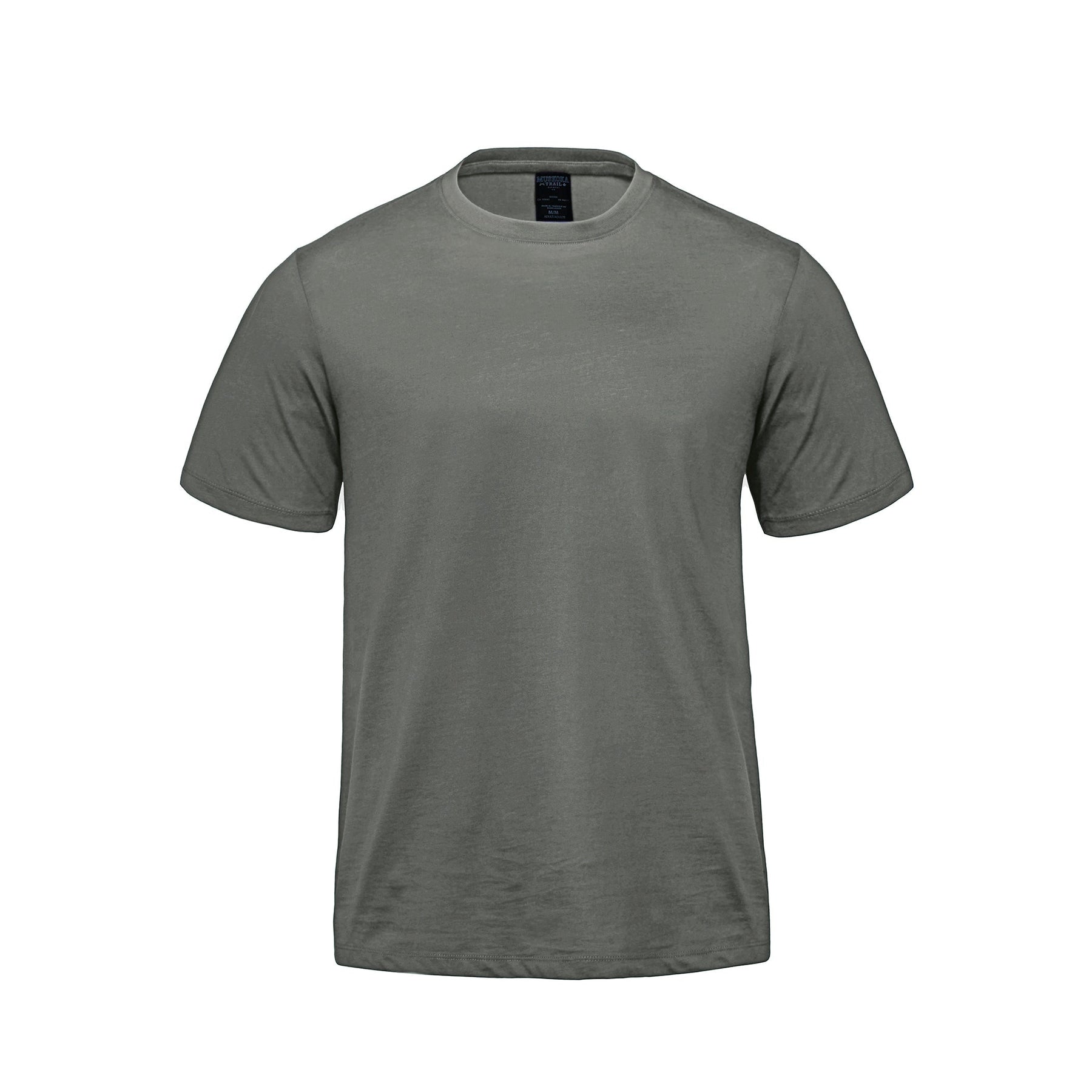 160 GSM - 4.7oz/yd2 - 8 oz./lin. yd. Solids - 100% certified organic cotton jersey, Heathers - 80% certified organic cotton, 20% polyester jersey. 28 single combed compacted yarn. Rib knit neckline with spandex for shape retention. Jersey knit back neck tape. Tear-away label. Side seamed. Crewneck for Adult and Scoop neck for ladies equivalent S05501.