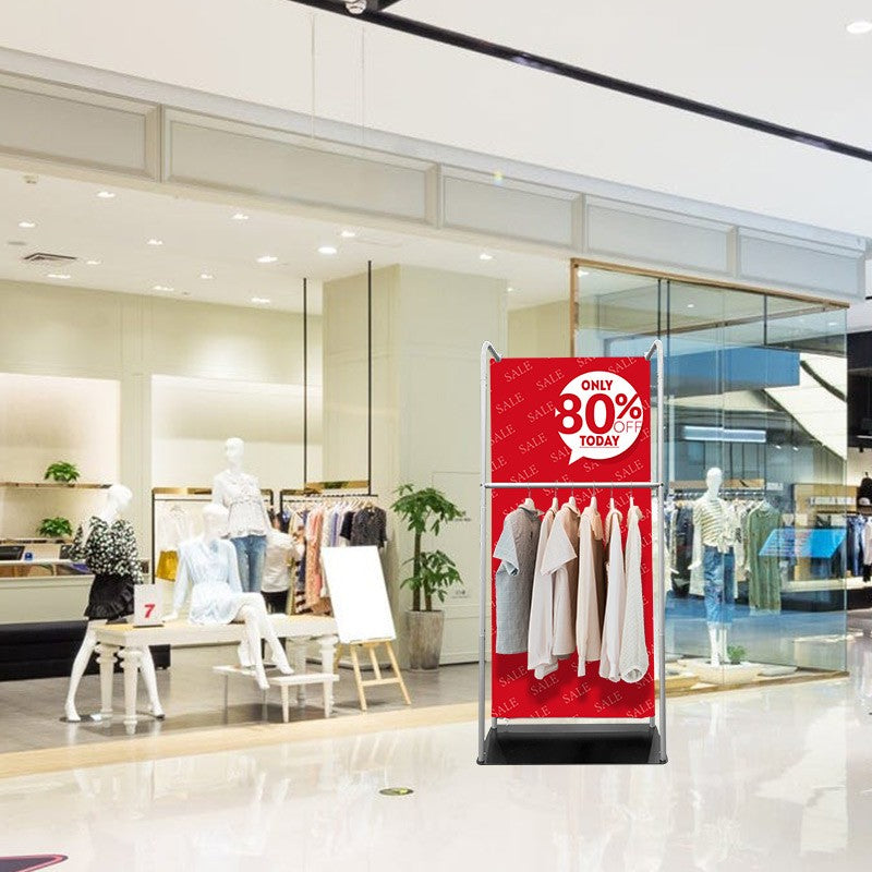 Elevate your brand with this tension fabric display stand featuring a hanging rail, perfect for showcasing products at trade shows, malls, pop-up shops, fashion shows, and promotional events. Portable and lightweight, its clean graphic panel effectively delivers your message and attracts attention to your products. Ideal for maximizing brand visibility and impact.